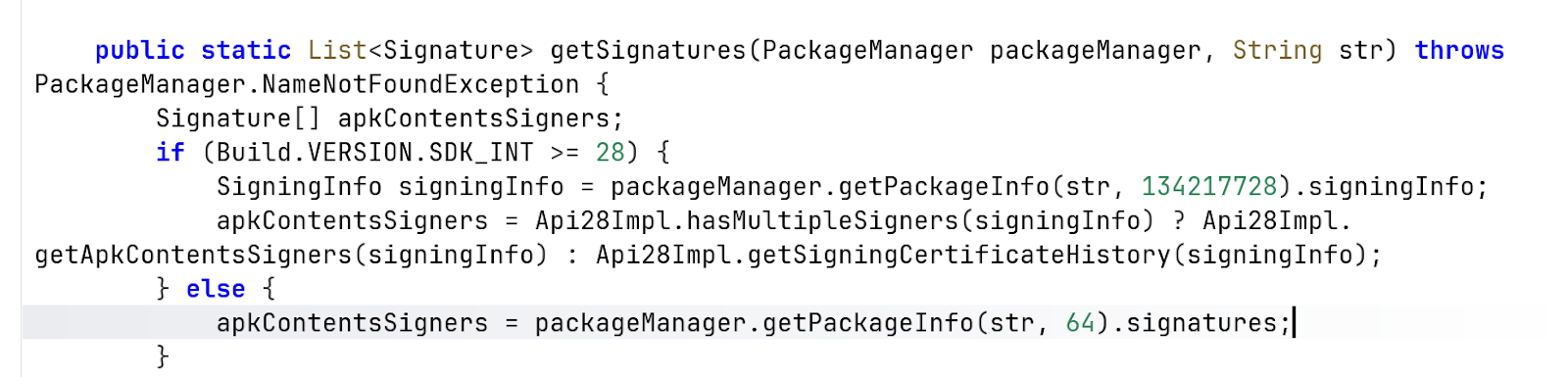 The loader intercepts calls like: PackageManager.getPackageInfo() and returns the original certificate, preventing the app from detecting that it was modified.