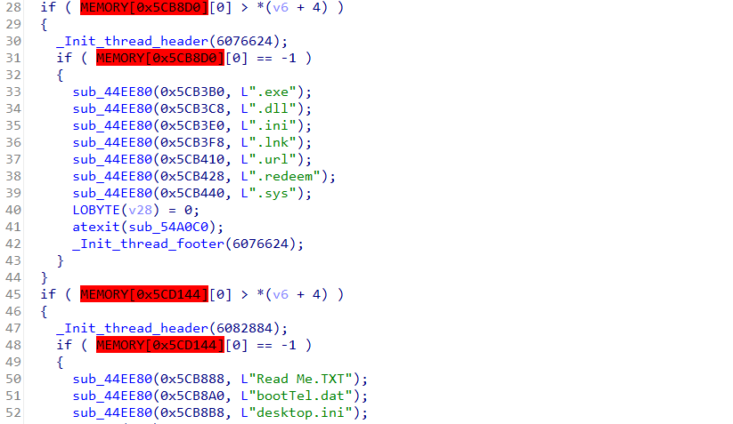 It initializes the ransom note in Base64 and writes the decoded value to a file named Read Me.TXT. The encrypted files are saved with the .redeem extension.