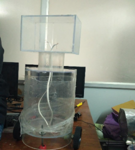 The structure of Herbie is made of acrylic sheets which are light-weight. Herbie consists of a skeleton and various chambers, as well as a base and a head. It also has different subsections that hold electronic circuits and enable power supply. The skeletal structure consists of an acrylic tube that is 200mm in diameter and 400mm in height. The base of Herbie is made up of a circular acrylic sheet that has a radius of 192mm and a thickness of 5mm.