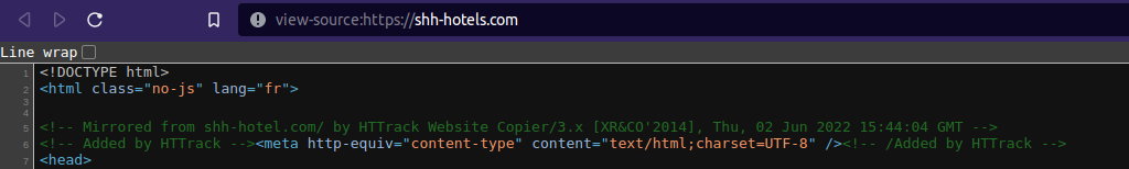 Source Code of a malicious domain showing the use of HTTrack software[/caption]